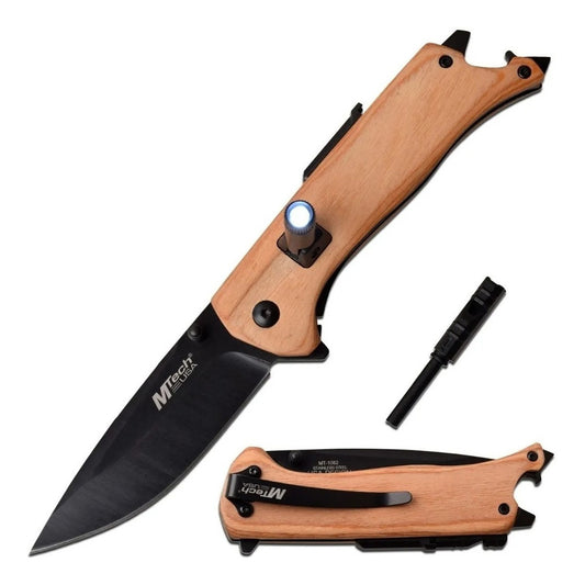 Navaja Mtech Usa Apertura Manual con pedernal Arrancador Fuego y Abrelatas