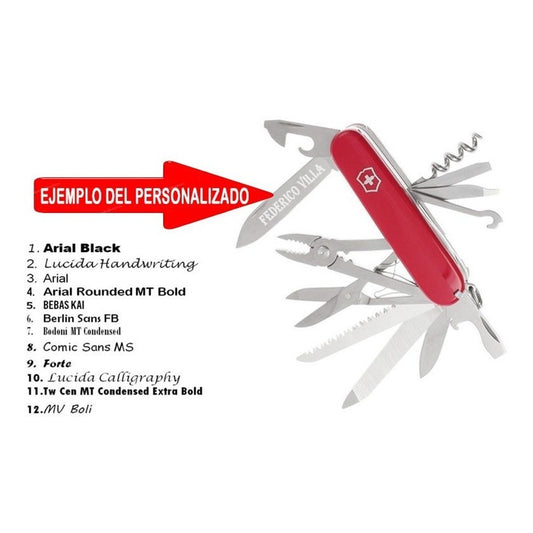 Navaja Victorinox Camper Roja Con Funda, Cordón y Grabado Personalizado Laser en Hoja