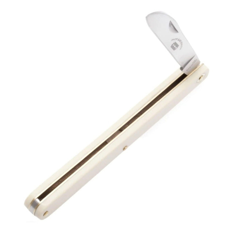 La navaja para frutas Imperial Folding Sampler está lleno de oportunidades. Este cuchillo largo y delgado de junta deslizante tiene una hoja de 3,75 pulgadas / / 9.5 cms hecha de acero inoxidable con alto contenido de carbono 7Cr17. La hoja de punta caída también tiene un tirador de clavos que hace que abrir el cuchillo para frutas sea rápido y fácil. Las escalas de su mango de celuloide amarillo se mantienen unidas con pasadores de latón y resortes traseros tratados térmicamente. Con un peso total de menos de 2 onzas, este cuchillo para frutas es fácil de llevar y muy versátil.