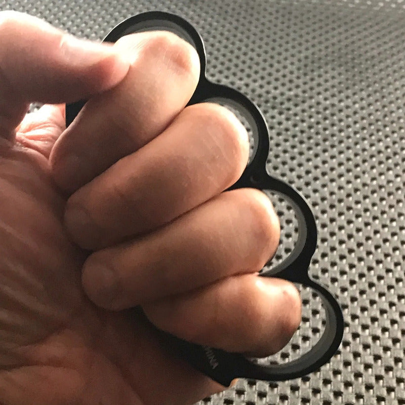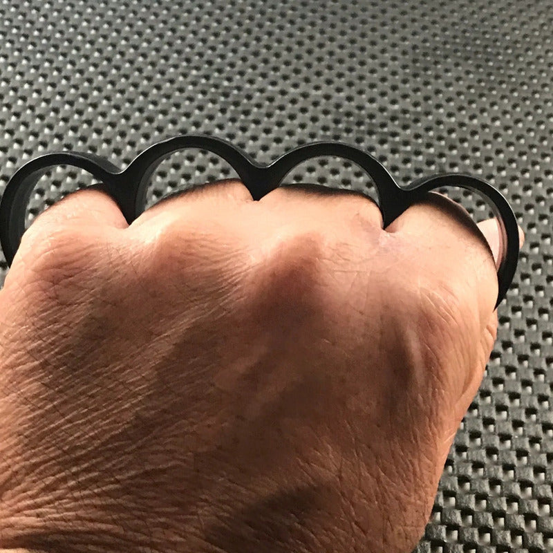 Esta manopla de latón resistente negra de autodefensa es un gran artículo de defensa personal para tener. Está hecha con un material de metal resistente y proporciona un agarre seguro alrededor de los dedos de los usuarios. Se puede sujetar a un cinturón para facilitar el transporte