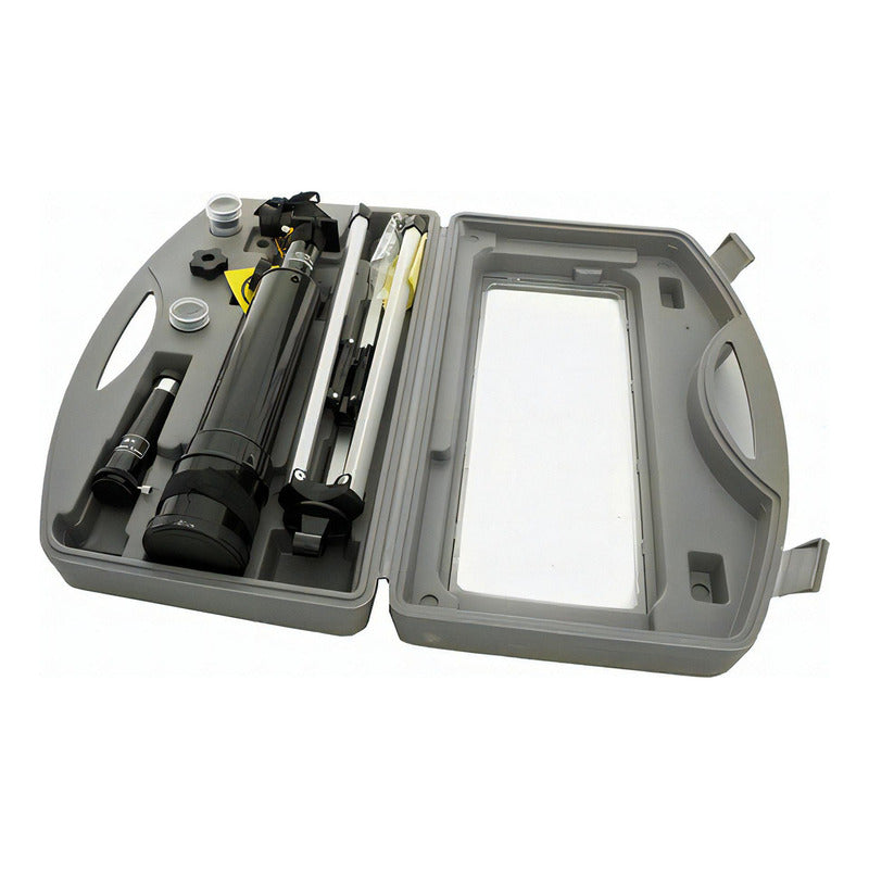 2 oculares, Estuche rígido, Lente Barlow, Telescopio refractor de 50 mm, Tripie de mesa de metal