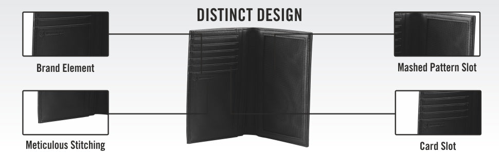 Es una billetera clásica con un giro, un giro de 90 grados, eso es. La billetera Grenoble está doblada longitudinalmente, por lo que es más alta y más espaciosa que las billeteras normales. Con su doble plegado vertical, hay espacio para seis ranuras para tarjetas de crédito, cuatro bolsillos de almacenamiento y una identificación europea. Está hecho para la vida ocupada del profesional de negocios de hoy.