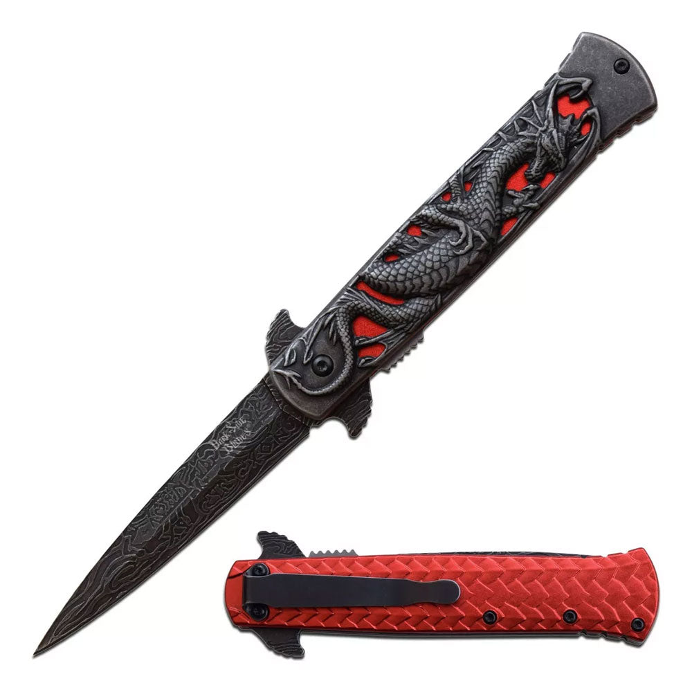 La Navaja Dark Side Blades Dragon Kaiju Got Semi Automática 081 es una pieza excepcional que combina funcionalidad y estética. Con un diseño exclusivo inspirado en dragones, esta navaja no solo es un utensilio práctico, sino también una obra de arte para los coleccionistas. Su mecanismo semi automático permite un uso ágil y eficiente, ideal para situaciones de supervivencia. La hoja de 9 cm, fabricada en acero inoxidable, garantiza resistencia y un filo liso que asegura cortes precisos. Con un largo total de 22 cm, su tamaño compacto la hace fácil de transportar. El mango de acero proporciona durabilidad y un agarre seguro. Este modelo, DS-A081RD, es perfecto para entusiastas de cuchillos que buscan calidad y un acabado detallado y atractivo. No pierdas la oportunidad de añadir esta navaja única a tu colección.